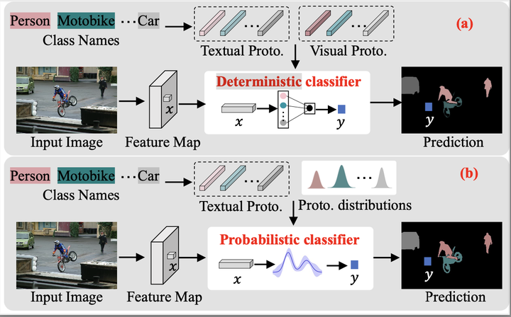Generalized Few-Shot Semantic Segmentation (GFSS) aims to extend a segmentation model to novel classes with only a few annotated examples while maintaining performance on base classes. Recently, pretrained vision-language models (VLMs) such as CLIP have been leveraged in GFSS to improve generalization on novel classes through multi-modal prototypes learning. However, existing prototype-based methods are inherently deterministic, limiting the adaptability of learned prototypes to diverse samples, particularly for novel classes with scarce annotations. To address this, we propose FewCLIP, a probabilistic prototype calibration framework over multi-modal prototypes from the pretrained CLIP, thus providing more adaptive prototype learning for GFSS. Specifically, FewCLIP first introduces a prototype calibration mechanism, which refines frozen textual prototypes with learnable visual calibration prototypes, leading to a more discriminative and adaptive representation. Furthermore, unlike deterministic prototype learning techniques, FewCLIP introduces distribution regularization over these calibration prototypes. This probabilistic formulation ensures structured and uncertainty-aware prototype learning, effectively mitigating overfitting to limited novel class data while enhancing generalization. Extensive experimental results on PASCAL-5i and COCO-20i datasets demonstrate that our proposed FewCLIP significantly outperforms state-of-the-art approaches across both GFSS and class-incremental setting.