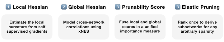 Vision foundation models achieve remarkable performance but are only available in a limited set of pre-determined sizes, forcing sub-optimal deployment choices under real-world constraints. We introduce SnapViT: single-shot network approximation for pruned Vision Transformers, a new post-pretraining structured pruning method that enables elastic inference across a continuum of compute budgets. Our approach efficiently combines gradient information with cross-network structure correlations, approximated via an evolutionary algorithm, does not require labeled data, generalizes to models without a classification head, and is retraining-free. Experiments on DINO, SigLIPv2, DeIT, and AugReg models demonstrate superior performance over state-of-the-art methods across various sparsities, requiring less than five minutes on a single A100 GPU to generate elastic models that can be adjusted to any computational budget. Our key contributions include an efficient pruning strategy for pretrained Vision Transformers, a novel evolutionary approximation of Hessian off-diagonal structures, and a self-supervised importance scoring mechanism that maintains strong performance without requiring retraining or labels.