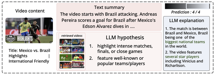 Predicting video popularity is often framed as a supervised learning task, relying heavily on meta-information and aggregated engagement data. However, video popularity is shaped by complex cultural and social factors that such approaches often overlook. We argue that Large Language Models (LLMs), with their deep contextual awareness, can better capture these nuances. To bridge the gap between pixel-based video data and token-based LLMs, we convert frame-level visuals into sequential text representations using Vision-Language Models. This enables LLMs to process multimodal content—titles, frame-based descriptions, and captions—capturing both engagement intensity (view count) and geographic spread (number of countries where a video trends). On 13,639 popular videos, a supervised neural network using content embeddings achieves 80% accuracy, while our LLM-based approach reaches 82% without fine-tuning. Combining the neural network’s predictions with the LLM further improves accuracy to 85.5%. Moreover, the LLM generates interpretable, attribute-based explanations for its predictions. Manual validations confirm the quality of these hypotheses and address concerns about hallucinations in the video-to-text conversion process. Overall, our findings suggest that LLMs, equipped with text-based multimodal representations, offer a powerful, interpretable, and data-efficient solution for tasks requiring rich contextual insight, such as video popularity prediction.
