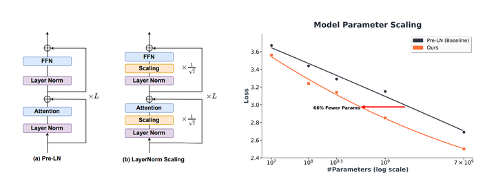 In this paper, we introduce the Curse of Depth, a concept that highlights, explains, and addresses the recent observation in modern Large Language Models (LLMs) where nearly half of the layers are less effective than expected. We first confirm the wide existence of this phenomenon across the most popular families of LLMs such as Llama, Mistral, DeepSeek, and Qwen. Our analysis, theoretically and empirically, identifies that the underlying reason for the ineffectiveness of deep layers in LLMs is the widespread usage of Pre-Layer Normalization (Pre-LN). While Pre-LN stabilizes the training of Transformer LLMs, its output variance exponentially grows with the model depth, which undesirably causes the derivative of the deep Transformer blocks to be an identity matrix, and therefore barely contributes to the training. To resolve this training pitfall, we propose LayerNorm Scaling, which scales the variance of output of the layer normalization inversely by the square root of its depth. This simple modification mitigates the output variance explosion of deeper Transformer layers, improving their contribution. Our experimental results, spanning model sizes from 130M to 1B, demonstrate that LayerNorm Scaling significantly enhances LLM pre-training performance compared to Pre-LN. Moreover, this improvement seamlessly carries over to supervised fine-tuning. All these gains can be attributed to the fact that LayerNorm Scaling enables deeper layers to contribute more effectively during training.